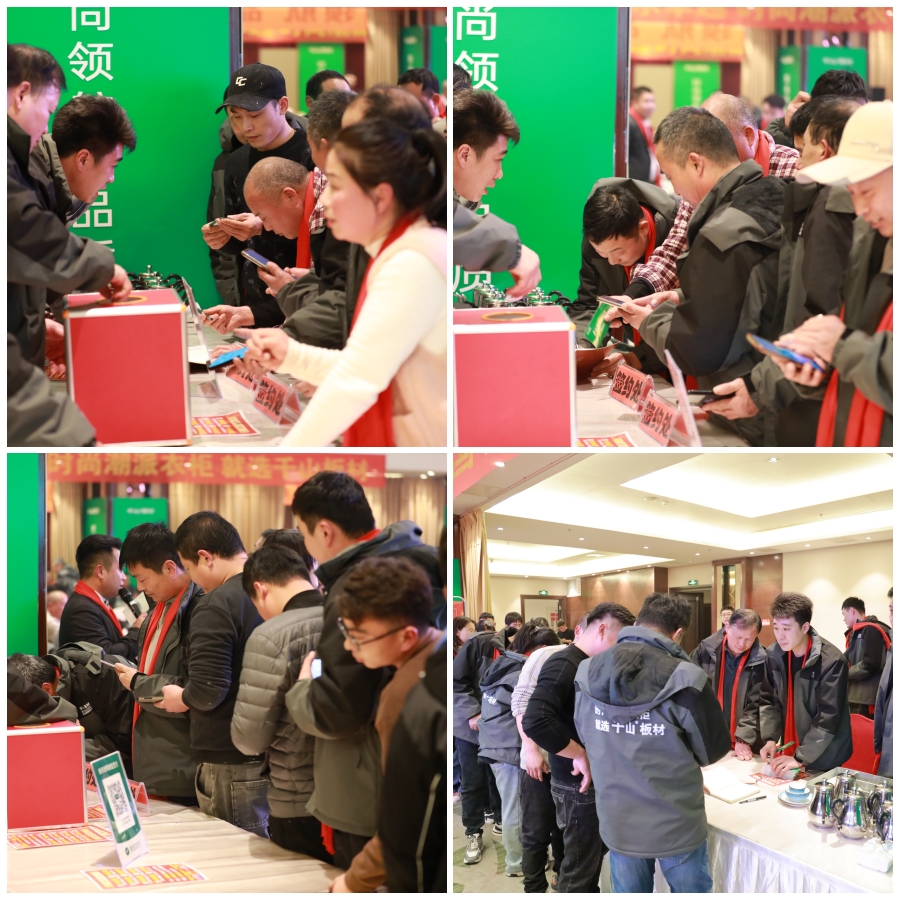 政策宣講環(huán)節(jié),金總重點介紹了千山板材的合作政策及空前優(yōu)惠力度。重磅優(yōu)惠包含定金膨脹、滿額返現(xiàn)、現(xiàn)場抽獎等,現(xiàn)場隨即排起了交款長隊,簽約火爆。