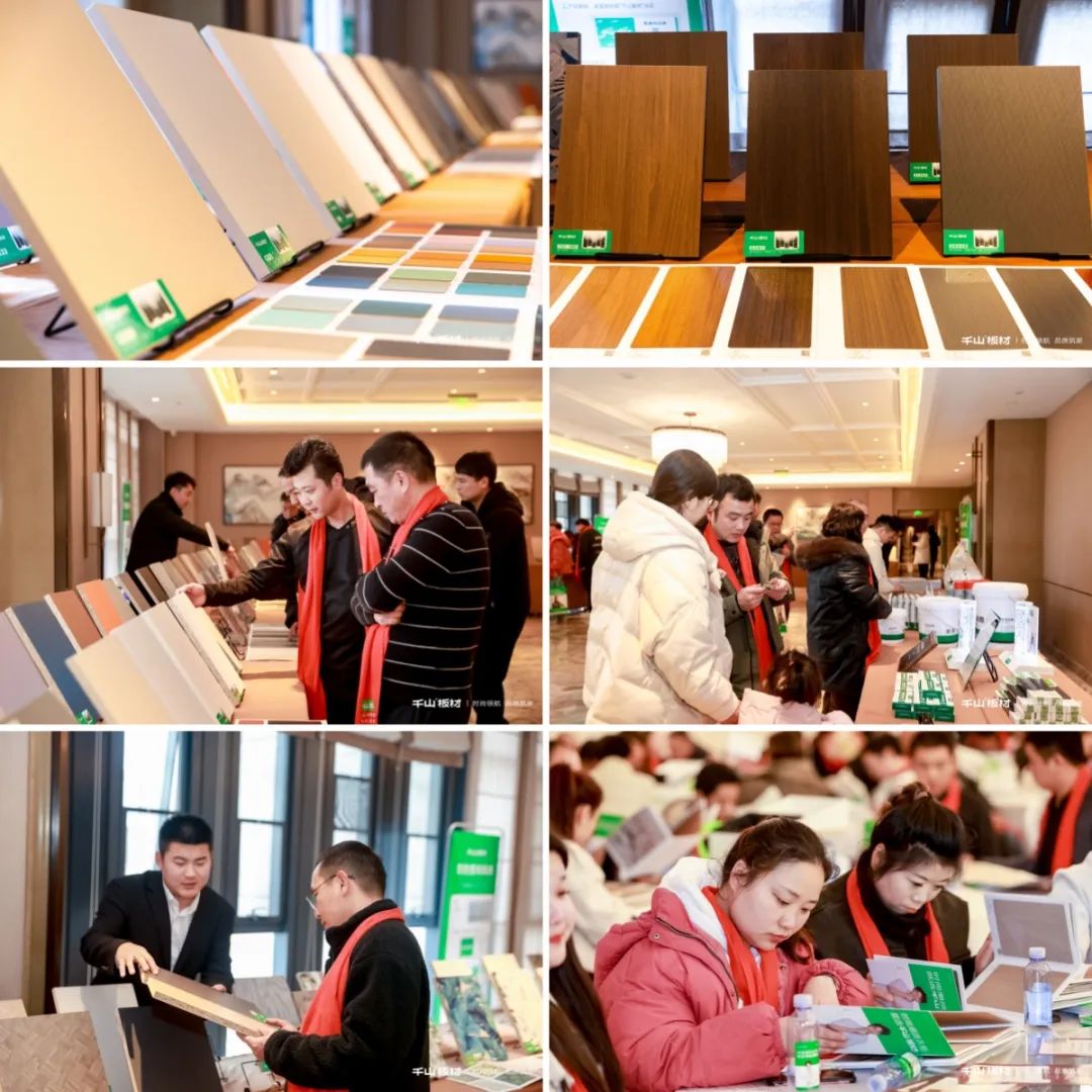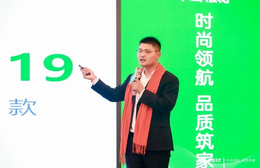 銷售部大區(qū)經(jīng)理王殿忠詳細(xì)介紹了千山板材的產(chǎn)品體系。2024年,千山產(chǎn)品體系已全面升級,涵蓋大實木刨片板、小實木刨片板、多層板、實木板四大品類,擁有木紋、純色、布紋石紋、高定、數(shù)碼、門板6大系列花色,一站式滿足整家定制的需求。