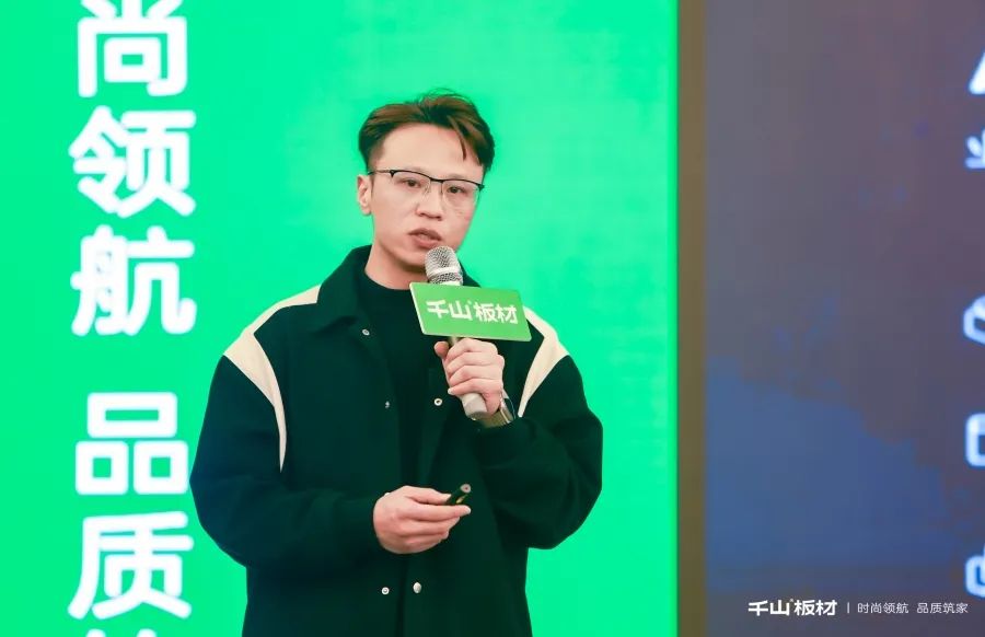 肖總精彩闡述了2024年家居設(shè)計趨勢和千山板材花色研發(fā)策略?;谧匀唤】岛涂沙掷m(xù)性,千山2024全新系列花色隆重推出,更具時尚性和代表性。
