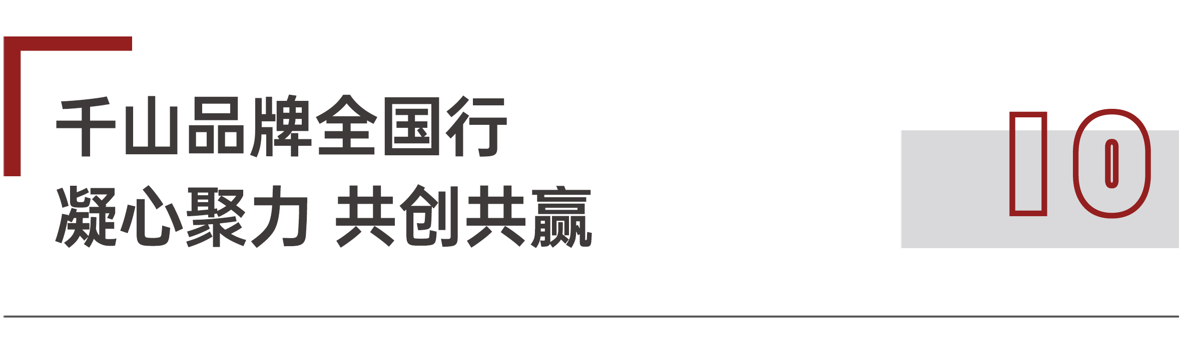 一季度,千山品牌全國(guó)行活動(dòng)相繼在河南、江蘇、山東、湖南、河北、山西,6省13地市成功舉行,累計(jì)綁定銷售額超8000萬,掀起了千山板材的品牌傳播熱潮。接下來,千山品牌全國(guó)行還將在全國(guó)各地陸續(xù)舉行,歡迎更多的合作伙伴蒞臨現(xiàn)場(chǎng),參觀交流。