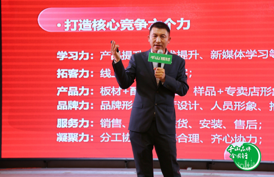 千山板材區(qū)域經理高平紅對千山的成長歷程、品牌升級戰(zhàn)略、產品優(yōu)勢進行詳細介紹。千山板材在全國已擁有1000+品牌專賣店,快速發(fā)展的背后,是千山與全國合作伙伴的緊密協作、攜手共進。