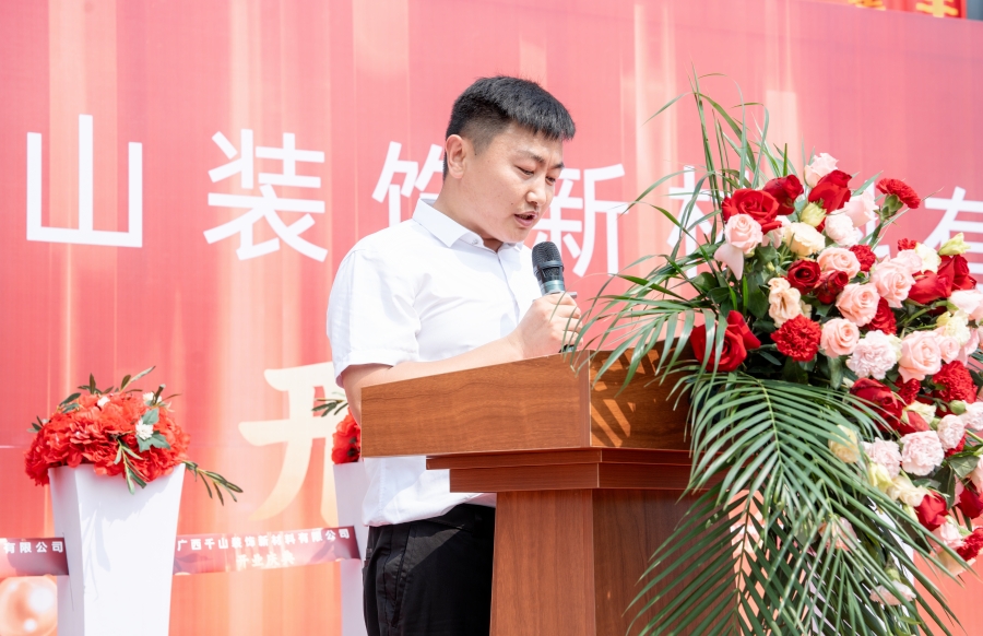 隨后,廣西千山裝飾新材料有限公司總經理邵廣峰發表講話。邵總表示,廣西生產基地將秉承集團的發展宗旨,在政府和協會的領導下,整合利用市場資源優勢,加強管理、提升技術,以高昂的熱情積極投身于各項生產經營活動,助力集團的高質量發展,同時為推動行業的發展作出應有的貢獻。