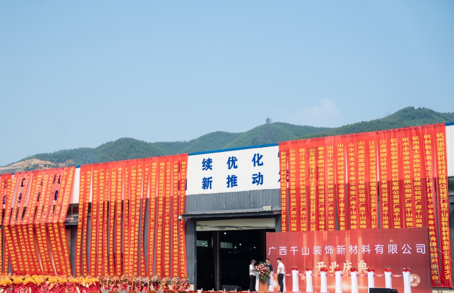 2024年5月25日,千山集團廣西生產基地——廣西千山裝飾新材料有限公司終于揭開神秘面紗,在廣西融安縣浮石工業園區正式落地,開業典禮于公司園區盛大舉行!