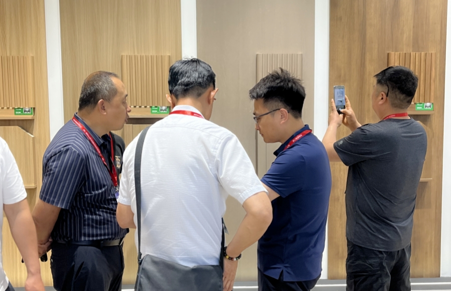 千山板材門墻柜系統打通15款潮流花色,從板材、木門、圓弧、格柵、埡口、門套線、踢腳線等各系列產品全方位展出,為觀展客戶帶來深度的門墻柜一體化產品體驗。