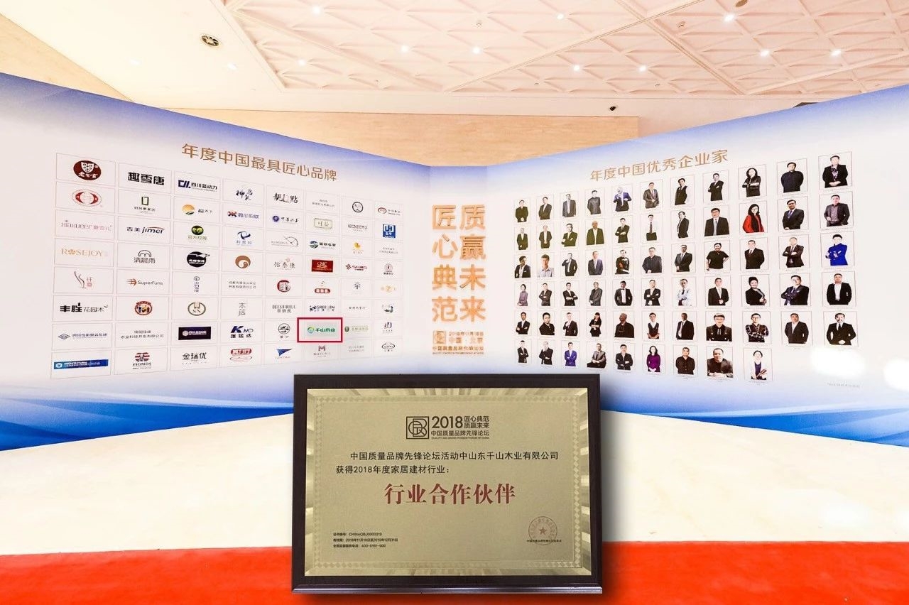 2017年7月,中國木質(zhì)林產(chǎn)品質(zhì)量提升與品牌建設(shè)高峰論壇在廣州舉行,千山應(yīng)邀參加,并榮獲2017年度“精品人造板(含飾面板)”、“精品裝飾紙”榮譽(yù)。