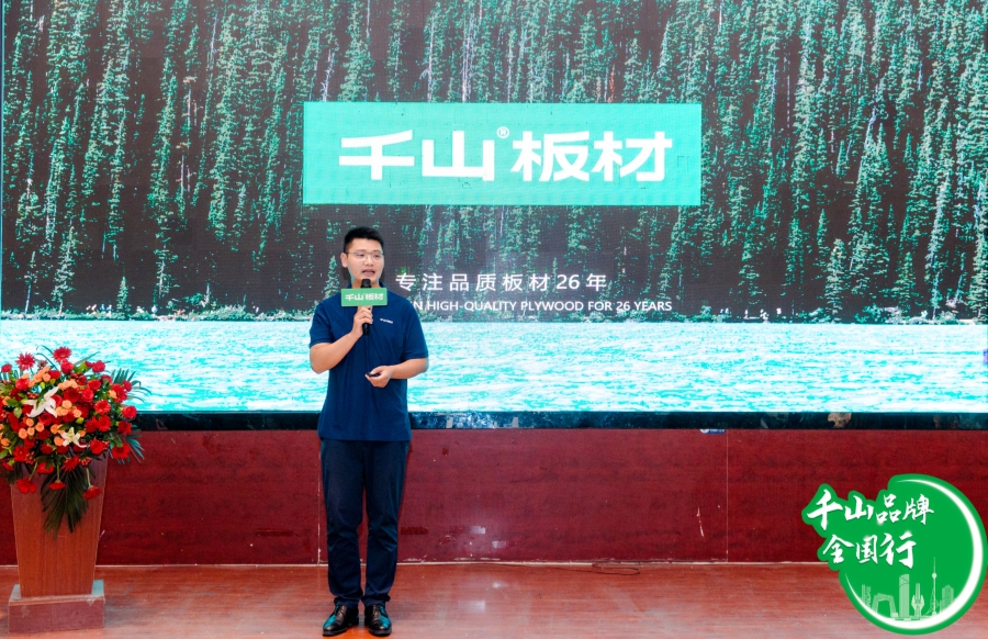 千山板材大區經理王殿忠致辭。王經理分享到,2024年,千山以強勁的市場響應速度,打造形成更完整的產品體系,并以“現貨庫存 1張起發”的現貨倉布局為經銷商及合作伙伴注入新的發展動能。