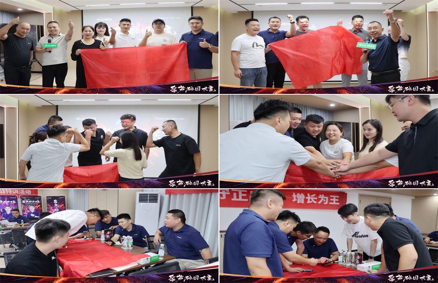此次參與特訓(xùn)的經(jīng)銷(xiāo)商學(xué)員,分成實(shí)力均衡的六大戰(zhàn)隊(duì)相互PK,正式開(kāi)始了本次特訓(xùn)課程,各組推舉隊(duì)長(zhǎng),想隊(duì)名、寫(xiě)口號(hào),各團(tuán)隊(duì)擰成一股繩、勇?tīng)?zhēng)第一!