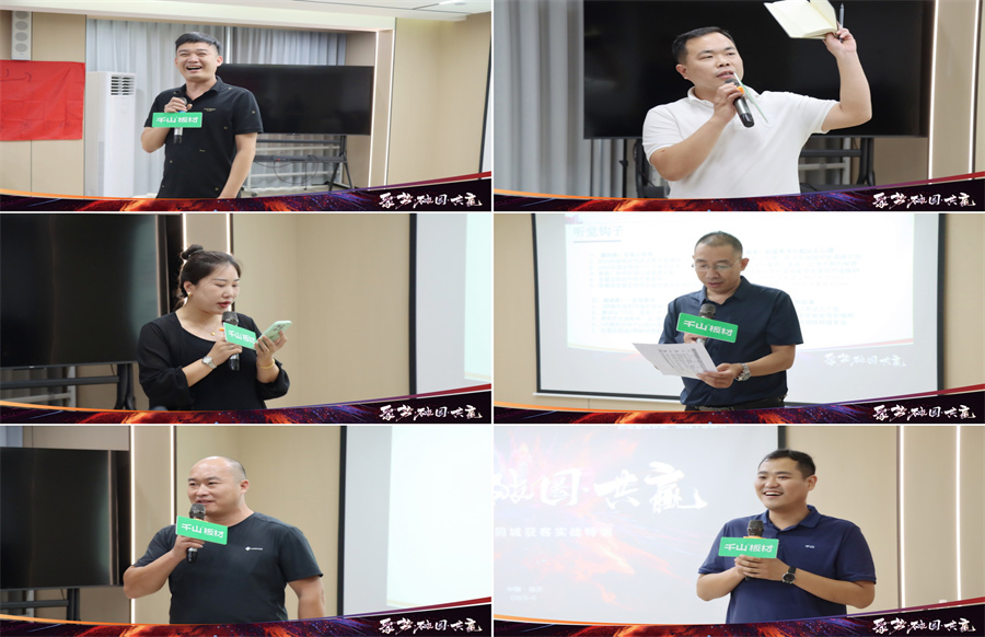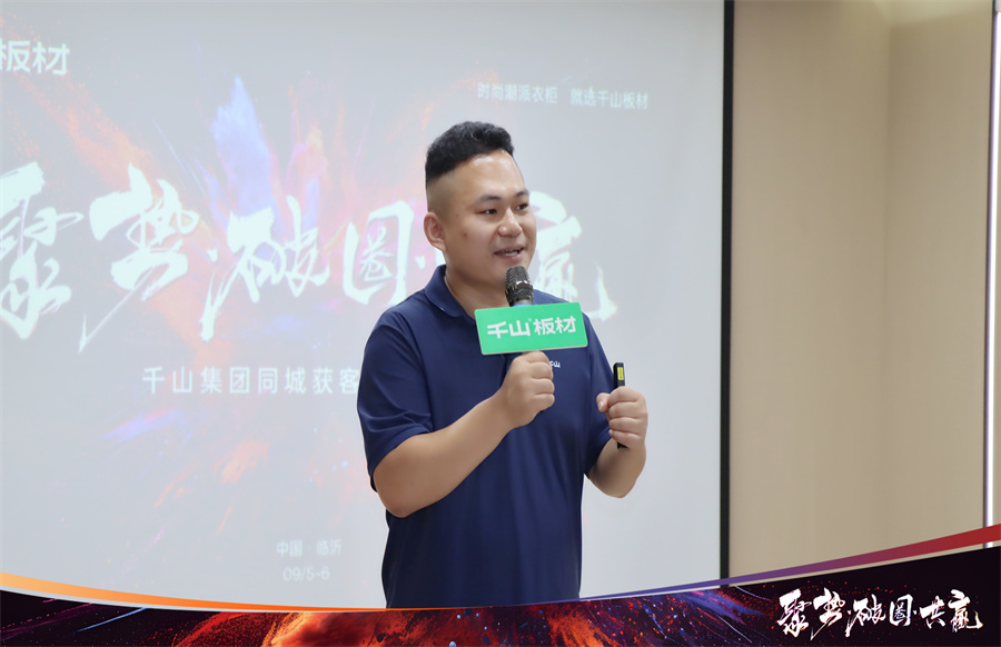 打好流量牌 把握線上渠道 將同城獲客作為重要抓手打造IP 在開(kāi)營(yíng)致辭中,千山板材山東倉(cāng)總經(jīng)理?xiàng)钚闵绞紫葘?duì)來(lái)到總部學(xué)習(xí)的伙伴們表示熱烈歡迎!楊總分享到,面對(duì)劣幣驅(qū)逐良幣的激烈競(jìng)爭(zhēng)環(huán)境,破局向上、流量打造勢(shì)在必行。如今是短視頻和直播時(shí)代,大家要提高自身專(zhuān)業(yè)度,布局線上渠道,驅(qū)動(dòng)增長(zhǎng)。也希望家人們把握學(xué)習(xí)好時(shí)機(jī),滿載而歸。