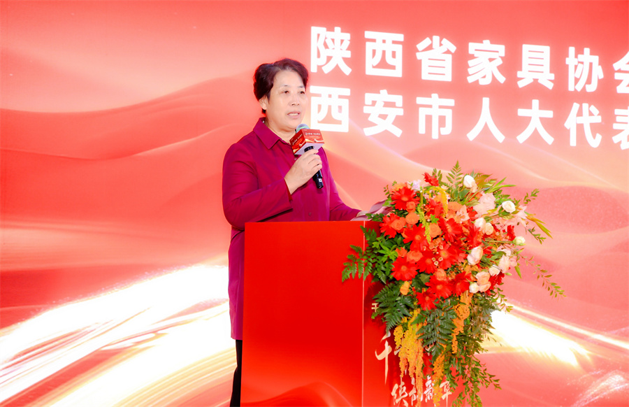 陜西省家具協(xié)會會長靳喜鳳女士上臺致辭。靳會長為陜西倉送上了開業(yè)祝福并表示,千山板材陜西倉是對家具產(chǎn)業(yè)鏈優(yōu)化和服務升級的積極探索,是連接消費者與優(yōu)質家具產(chǎn)品的橋梁,將為陜西家具市場注入新的活力。