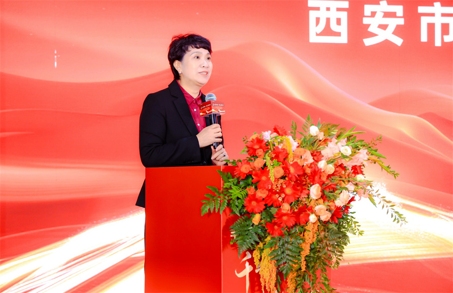 西安市酒店用品行業(yè)協(xié)會會長王勤女士上臺致辭。王會長表達了對千山板材陜西倉落地西安的祝賀,期望千山板材陜西倉能繼續(xù)以高品質的產(chǎn)品服務回饋消費者,賦能推動西北家具行業(yè)的發(fā)展。