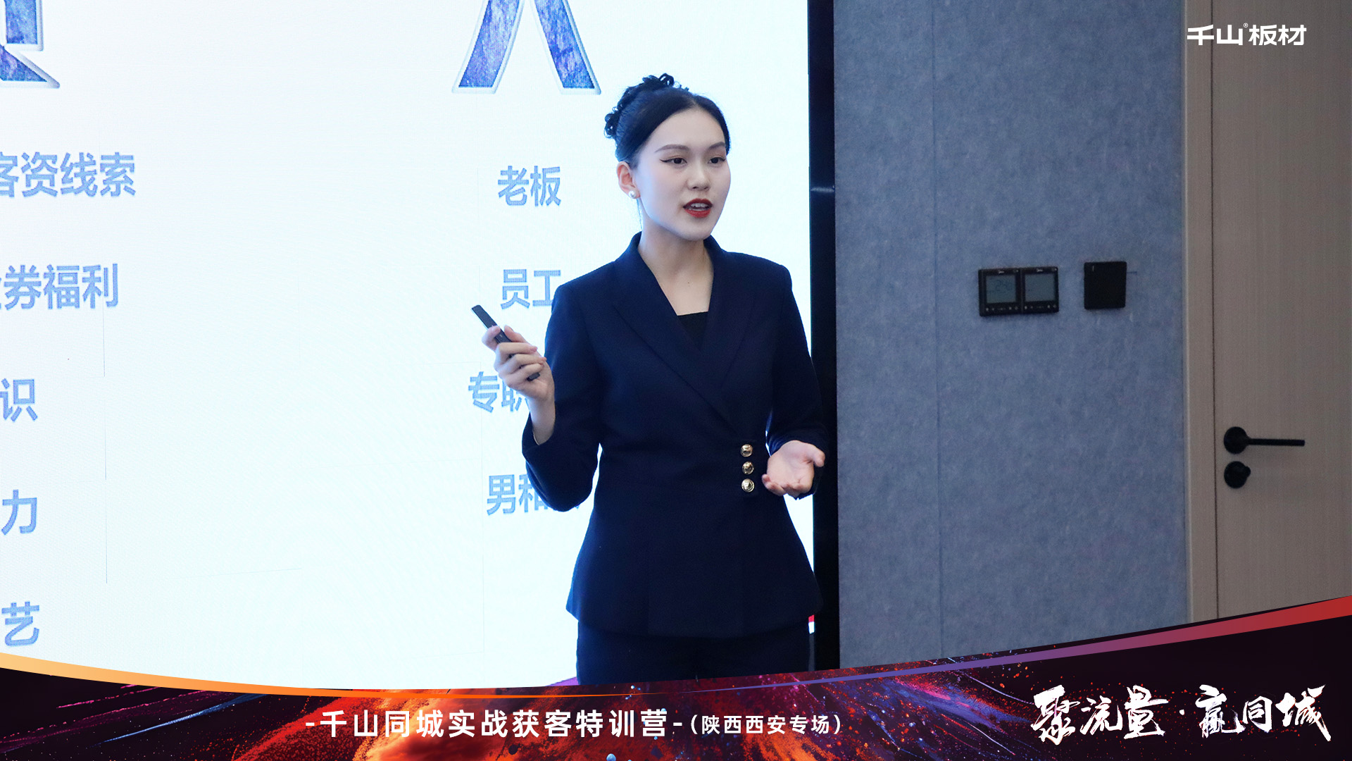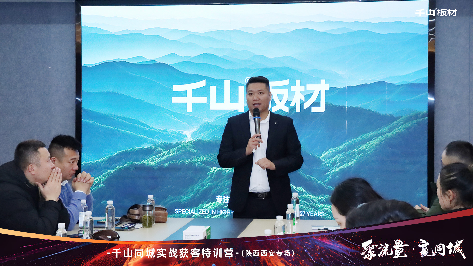 跟上新賽道風向,拓展流量致勝渠道。活動開始,千山板材陜西倉總經理王國棟致辭。王總表示:面對新媒體發展浪潮,我們要轉變營銷思維,積極布局抖音同城,打通線上的獲客轉化。