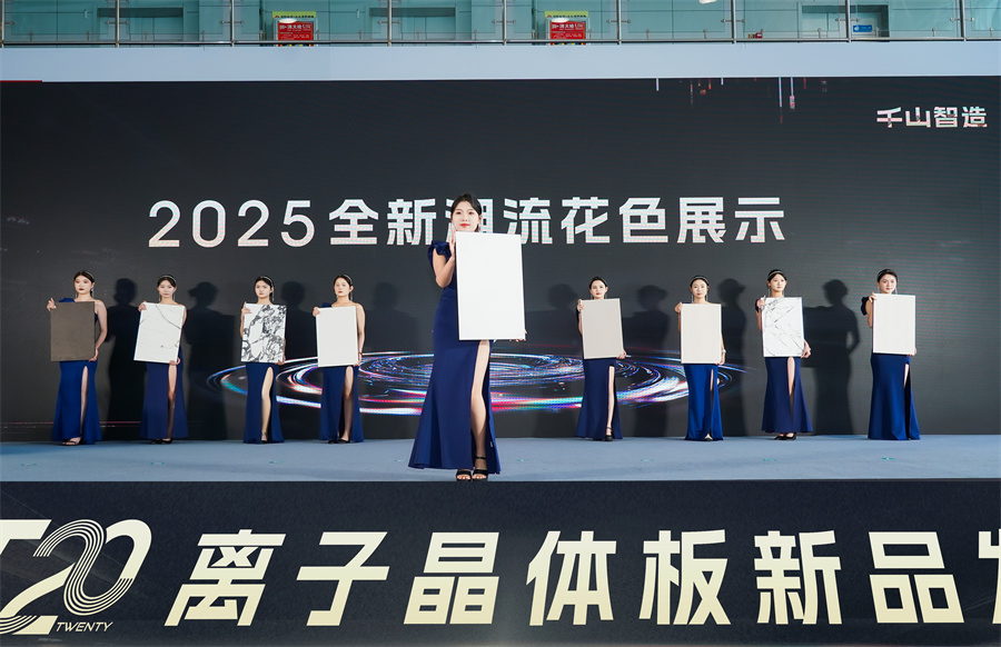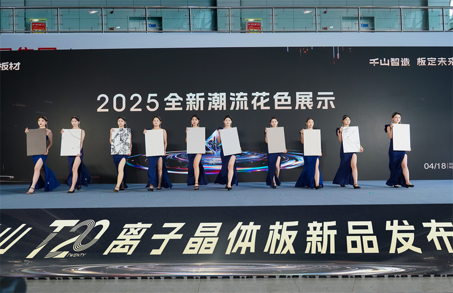 領導嘉賓們共同登臺,進行T20離子晶體板首發的啟動儀式。千山T20離子晶體板的正式上市,不僅標志著千山板材正式邁入“離子晶體板”時代,更預示著千山向著更高智造標準跨越式進階