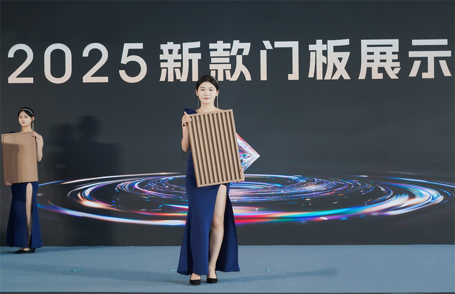 千山集團副總經理劉飛重磅發布2025系列門板:以22mm大刨片為基材,承重提升58%,門板10年內變形率<0.7%,壽命延長8-10年。打破市面傳統異形封邊工藝,采用雙涂層打造零顆粒感免拉手造型。
