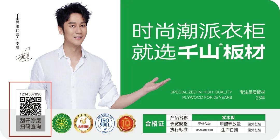 刮開二維碼涂層,關注微信公眾號「千山板材」,點擊底欄「防偽查詢」,選擇「板材」或者「輔料」,掃描二維碼或者輸入商標防偽碼,查詢即可。